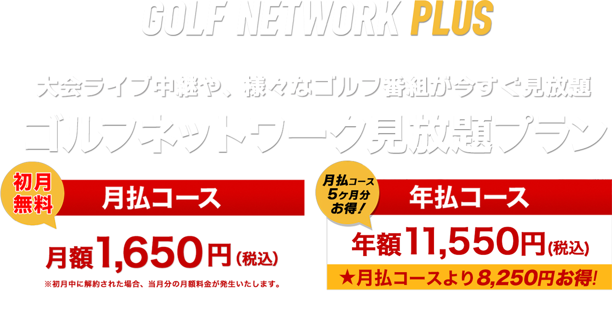 ・「ゴルフネットワーク見放題プラン[月払コース]」(Google Play / App Store):月額1,650円(税込)